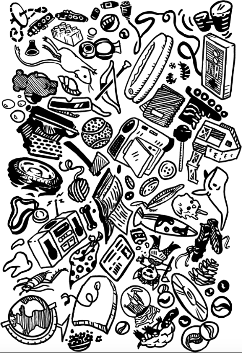 Reluctantly, I started thinking about what it is that makes me “Claire”. At first, I was so stubborn, I was going to just draw what I had planned on drawing and assert that, as a contrarian, it was autobiographical. But then, slowly but surely, I began to remember moments. I would pick out specific objects from various memories and draw them. Some of these memories hadn’t been accessed in so long, they startled me when I could recall them with such clarity. Inside jokes, old past times, so many things packed into just a couple of decades!